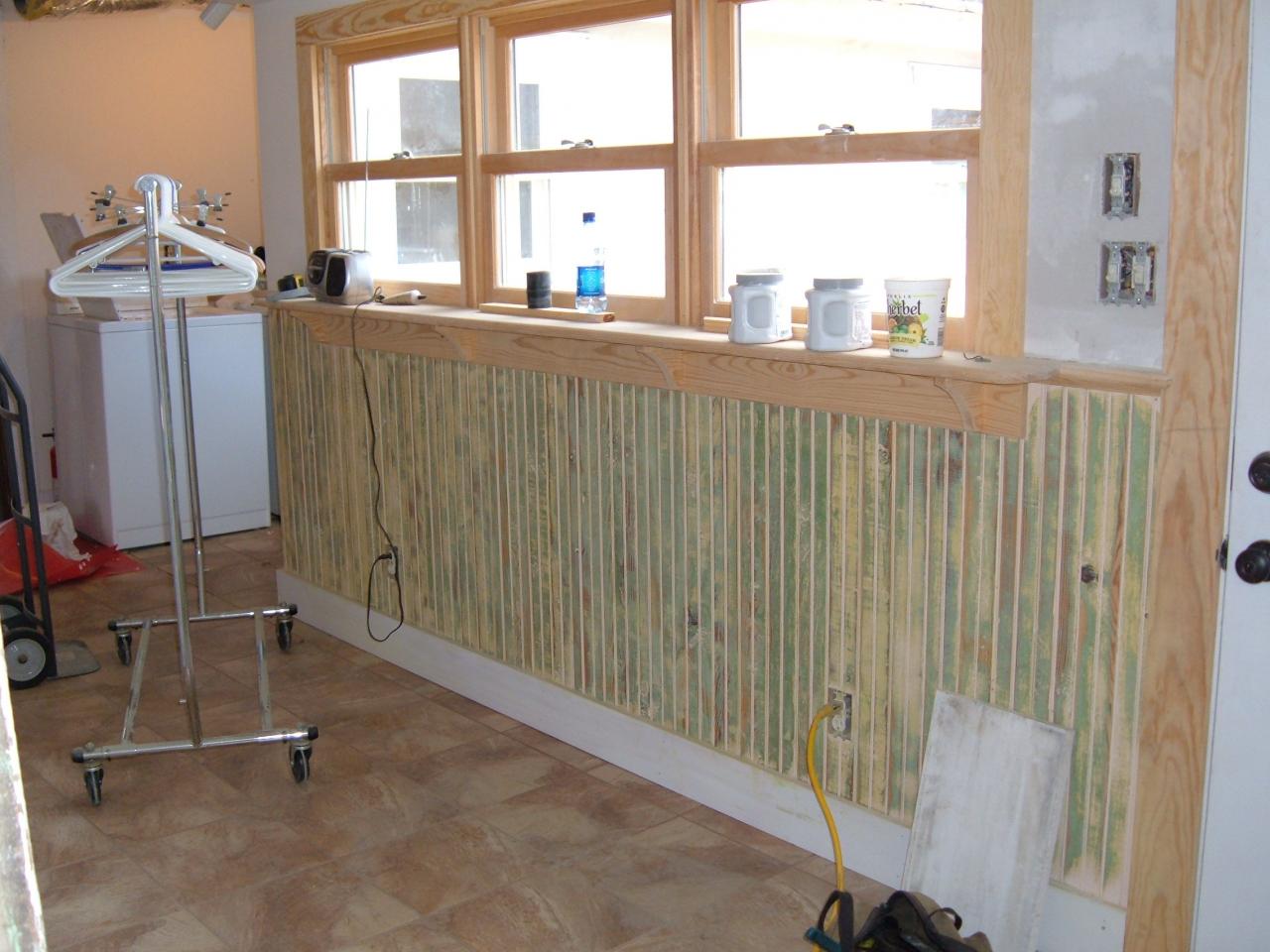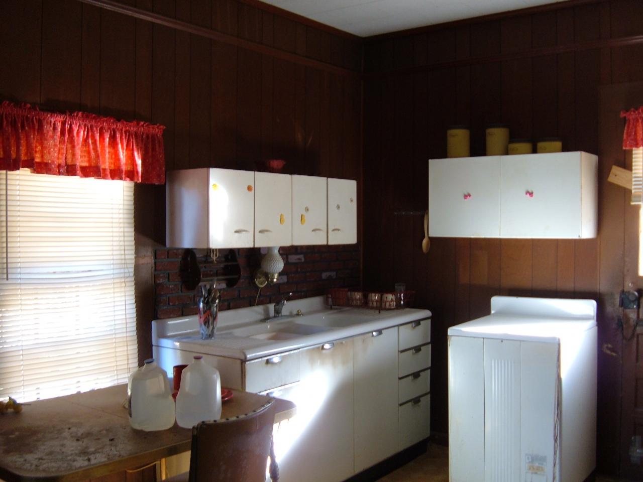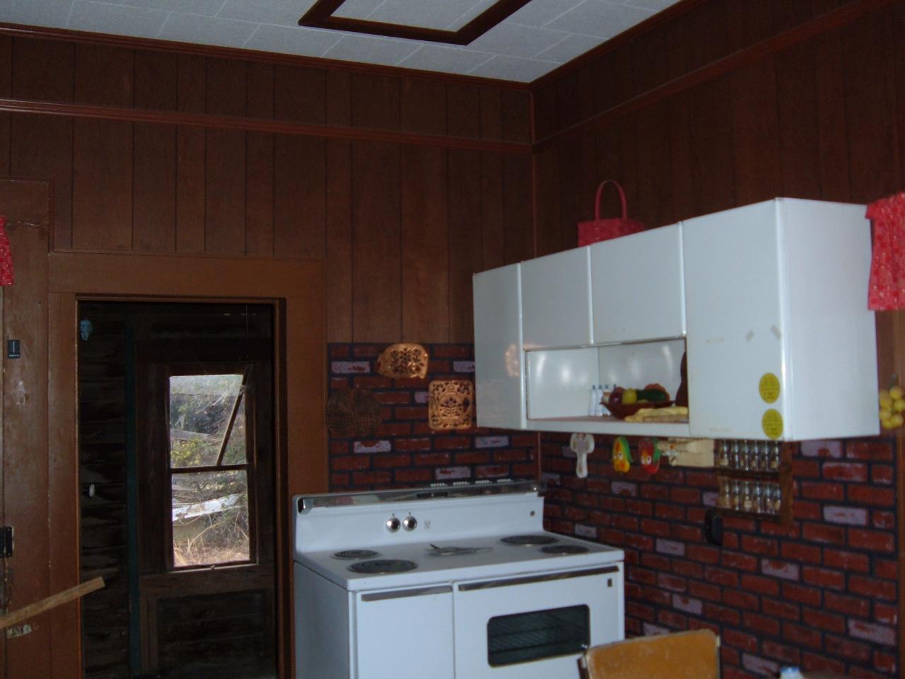 The kitchen was in the worst shape - the floors were rotted out and the room was extremely dark. Cherry cabinets and sloid surface countertops have been added along with a big farmhouse sink and stainless appliances. The kitchen has tile floors.