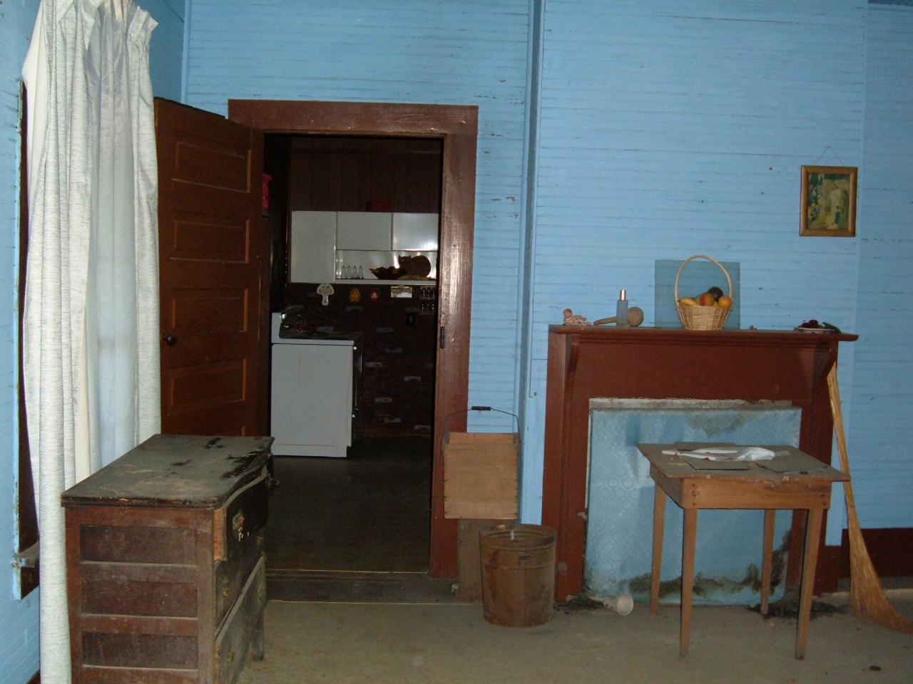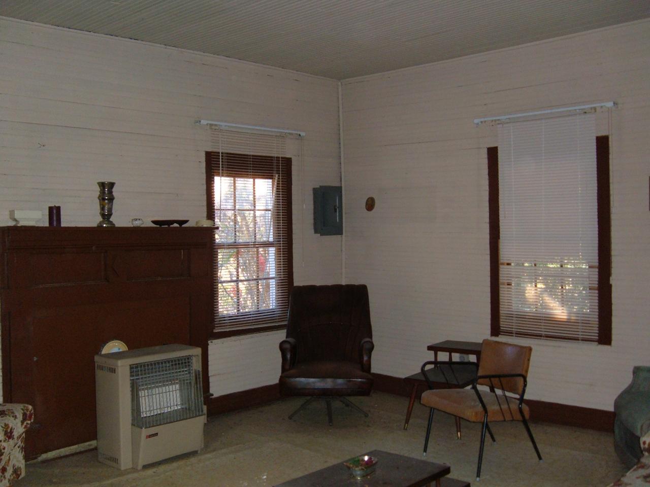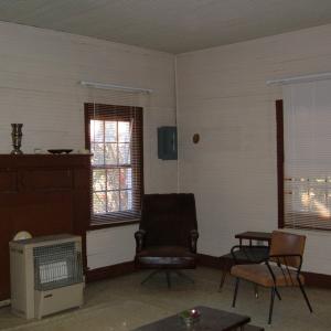 The living room was dark and dingy. Large windows have been added to create a bright cheery room. The original mantle was severly damaged by age - the current mantle is not original to the house but is antique.