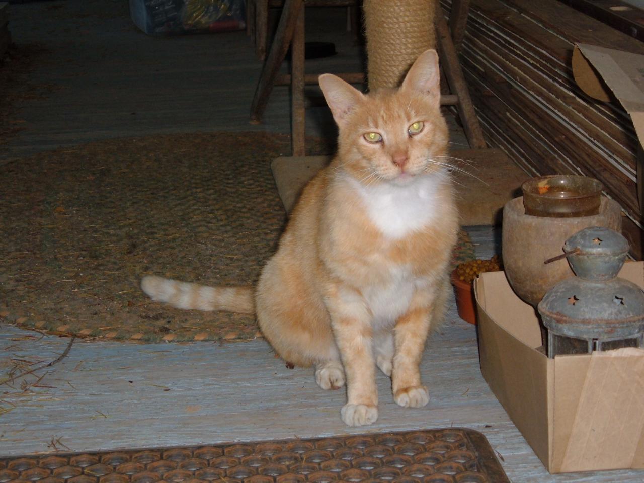 William is an orange cat that lived at Ed Bridges Farm when no one esle did - he came with the property. William (aka Billy) resides in one paticular barn. He chooses to spend most of his time in or around this barn. Williams barn was in almost non-salvagable condition and has been restored. It would have stored feed and wagons in it's early days and currently it serves several purposes. One side stores hay for the animals - one side is has become a garden shed and the middle part stores feed, tack and tools. William comes and goes through an open window in the back of the barn and is always there to greet visitors to his barn.